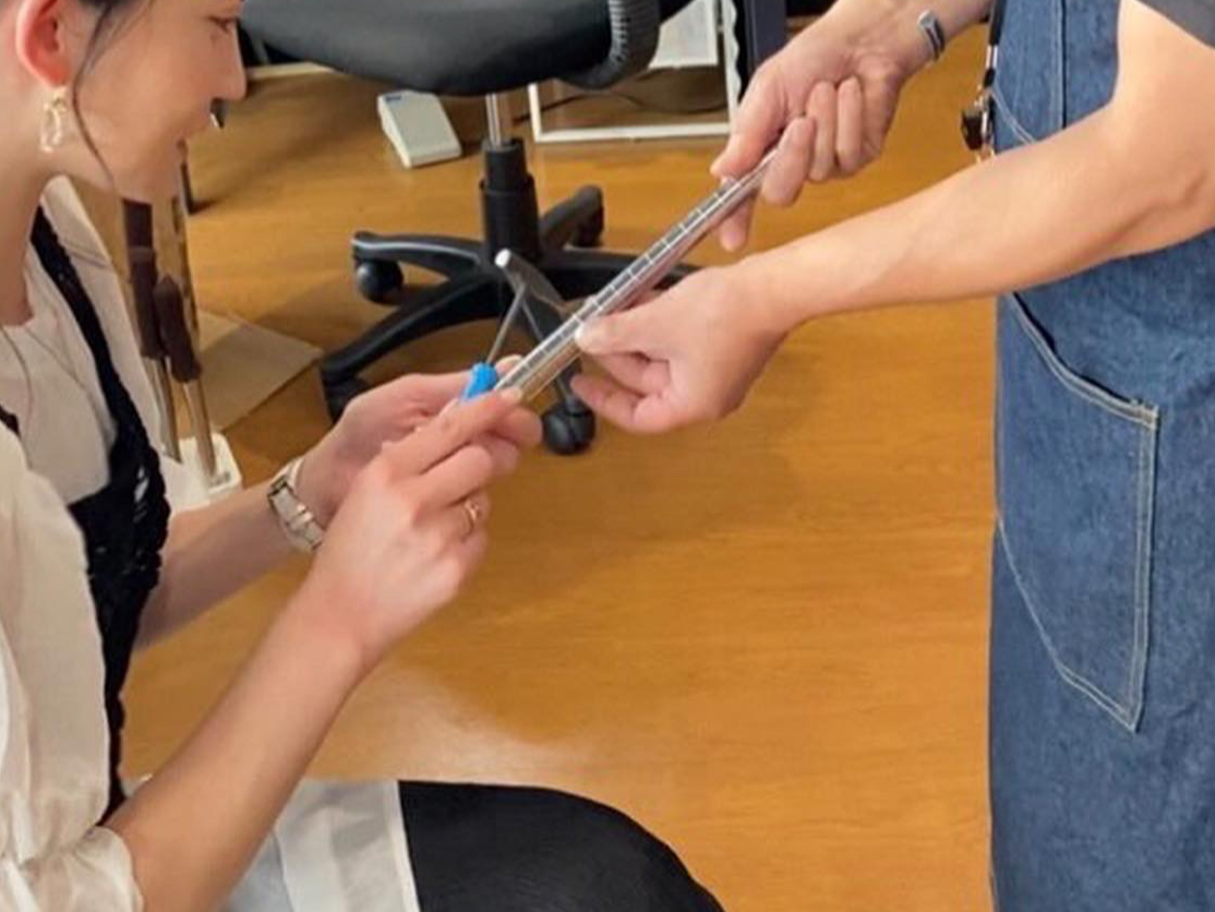 サイズと形状の整形と仕上げ直し等をスタッフが行いフィッティング確認してできあがり。