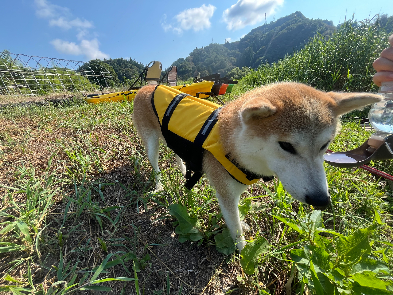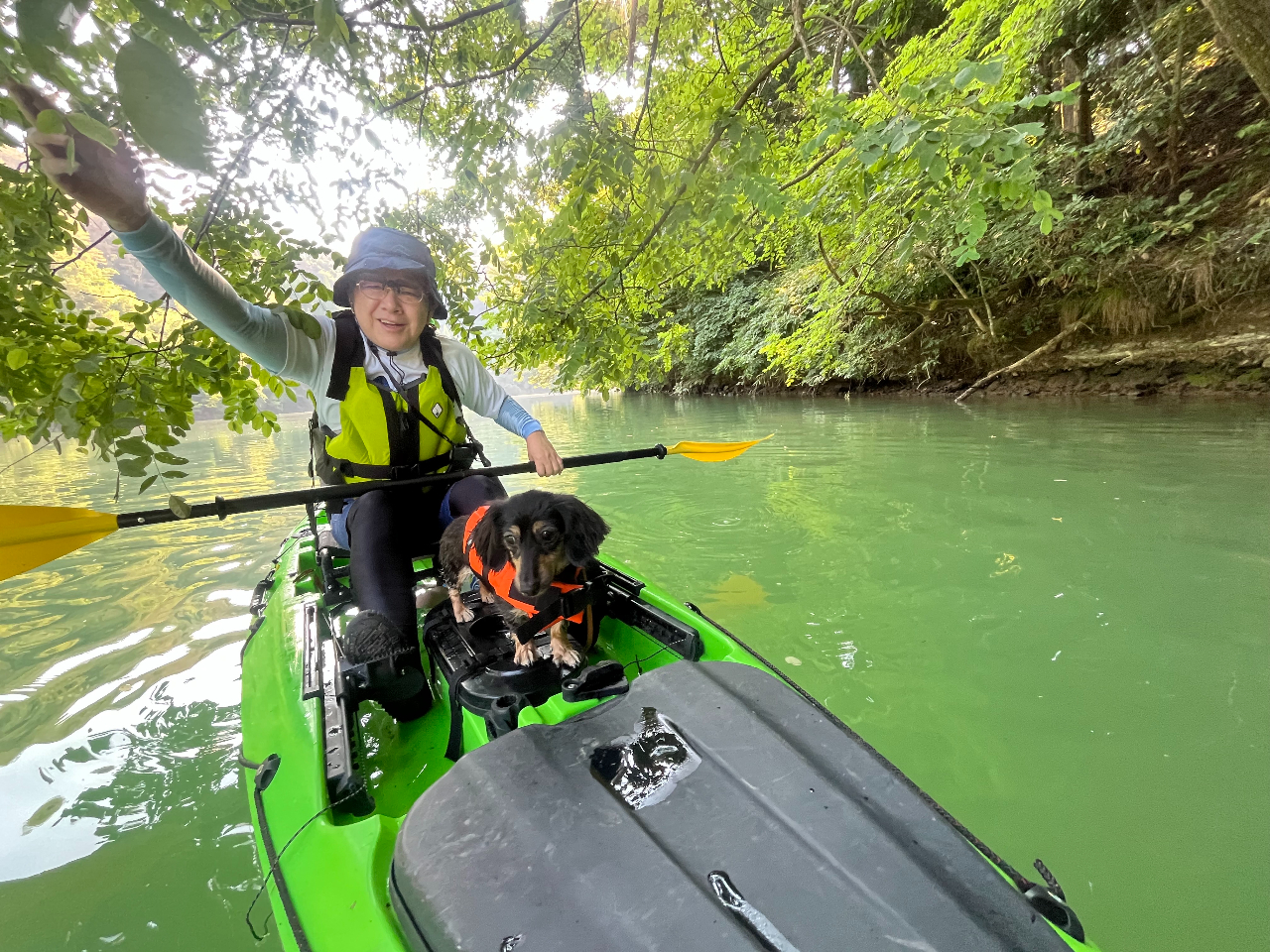 カヤックツアーのオプションで愛犬とカヤックに乗ってツアーに参加。