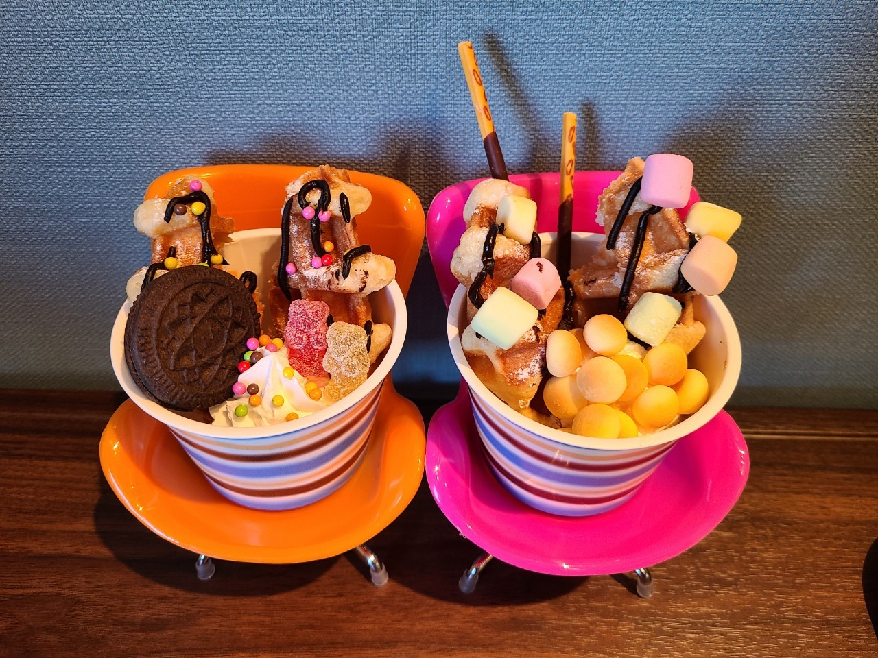 沢山のトッピングの中から選べるのがワクワクでしたし、トッピングもそれぞれ違うものを選んでシェアしたので最終的に色々乗ったワッフルになりました。