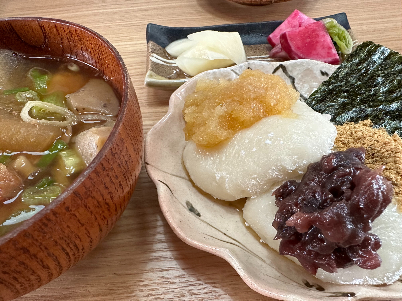 山県の古民家で人気のお餅つき!いろいろな味で食べ比べ♪昔ながらの羽釜やせいろ、手味噌の豚汁も好評です!