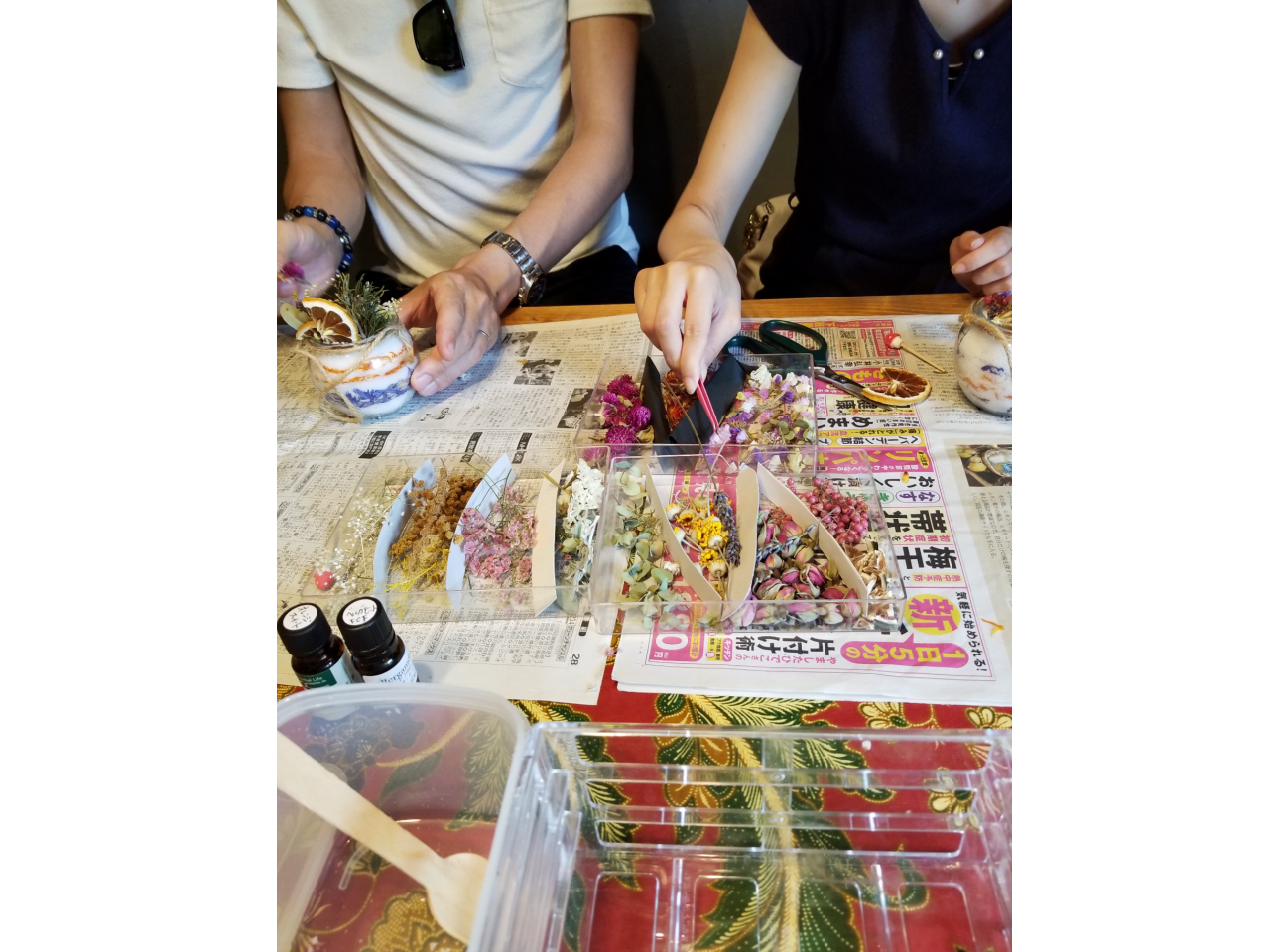 ドライフラワーとお塩を使って形作りをして、好きなアロマの匂いにして、最後に好きなように飾り付けするのが楽しかったです♪
