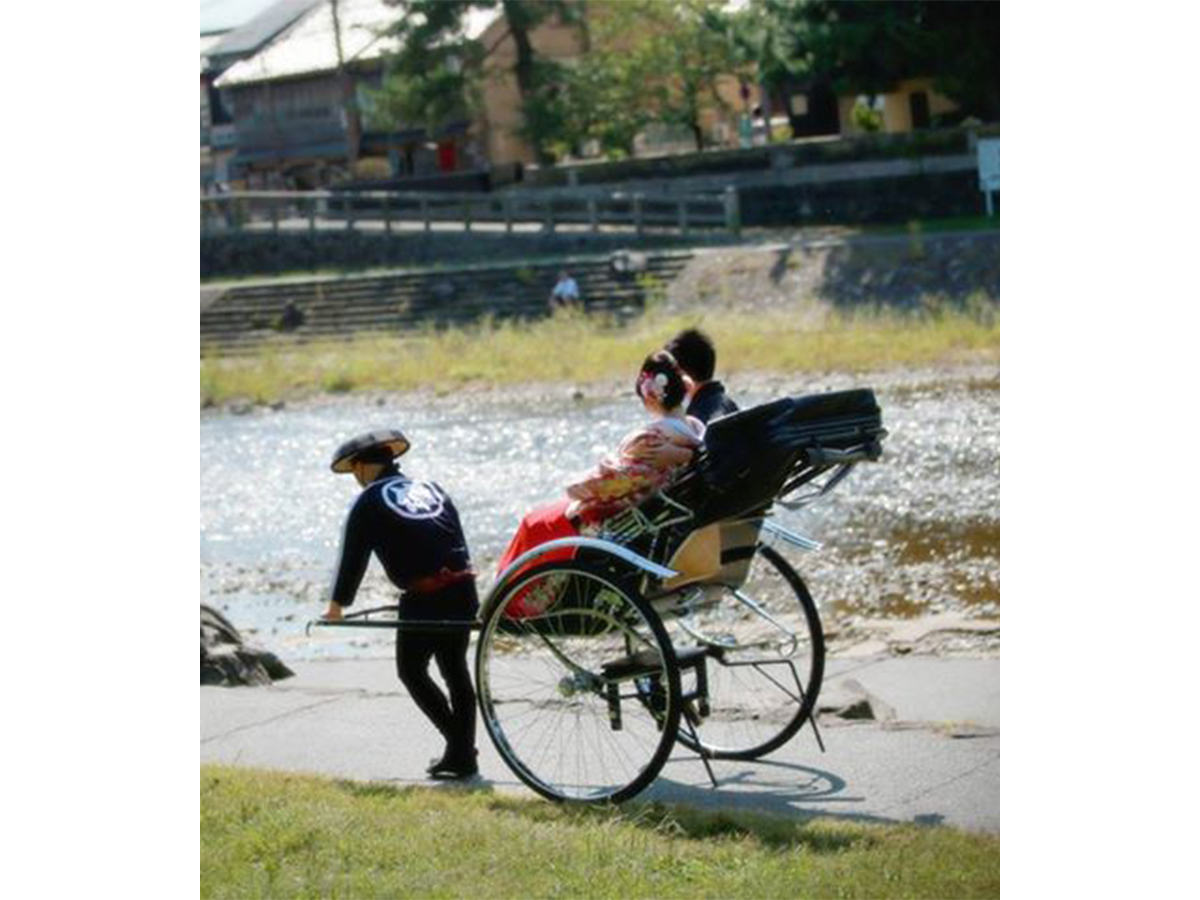 お子様からご年配のお客様、カップルやご家族連れのお客様まで、初めて人力車に乗る方も安心してご乗車いただけます。 Q 人力車は1台に何人まで乗れますか? A 基本的には大人2名が定員ですが小学生未満のお子様は、安全上問題が無いと判断できた場合は、大人1名につき子供1名までお膝元に抱っこしていただければ無料でご乗車いただけます。 (大人2名 + 子供2名 = 計4名が最大定員となります) Q 雨でも乗れますか? A 人力車には幌(屋根)や、雨よけシートがございますので、お客様が濡れる心配はございません。 多少、雨が霧のように座席へ舞い込んでしまう場合もございますが大雨や台風などではない限り問題なくご乗車できます。 雨の金沢は風情があり、歩いて足元が濡れることがない人力車はオススメです。 Q 写真撮影はしてもらえますか? A ご案内中、各スポットにてお客様のカメラをお預かりして撮影いたしますので、是非カメラをお持ち下さい。もちろん携帯電話のカメラでも撮影いたします。 Q 雪でも乗れますか? A 12月〜2月頃の金沢は雪が降ったり積もることがありますが、冬季も営業しております。 雪の場合は路面状況により走行不可やコースを限定しての運行となる場合がございますので詳しくは直接お問い合わせください。(走行の可否は当日の判断になる場合がございます。) |