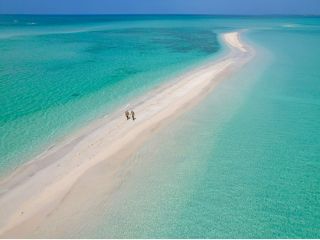 宮古島でSNS人気No.1のユニの浜ツアー!SUPで行く干潮時に出現する幻の島ユニの浜ツアーです!小型ボート並走しますので、体力に自信の無い方でも安全楽々!ドローン撮影付き!