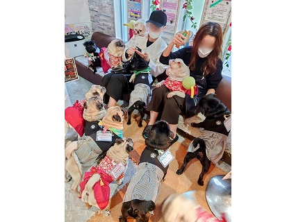 繁忙期(年末年始・GW・お盆)は開催なし【*平日限定!お試し30分コース*】かわいいパグたちがお出迎え☆世界中からパグ好きが集うカフェで癒されよう♪ 1ドリンク&600円のワンコ用おやつ付き