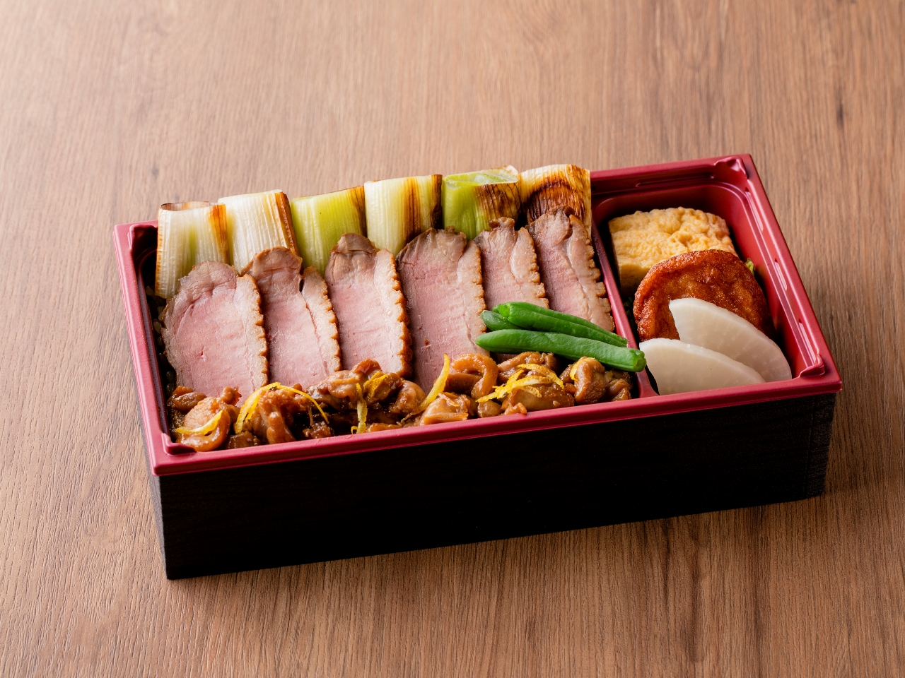 G20大阪サミットで正式食材に採用され、日本で一番高級な合鴨【河内鴨】を低温で3時間丁寧に火入れし、旨味を最大限に引き出した究極の弁当【河内鴨のロース煮弁当】は当店オリジナル限定販売です。