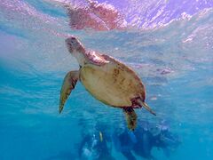 鍾乳洞ツアーの後、ウミガメスノーケリングをお願いしました。干潮の具合から前日に集合時間変更のご連絡をいただきました。当日はそれで中止にした他社ツアーもあったようで、私達は少人数でゆっくり鍾乳洞見学ができました。ガイドさんの見極めに大感謝です。