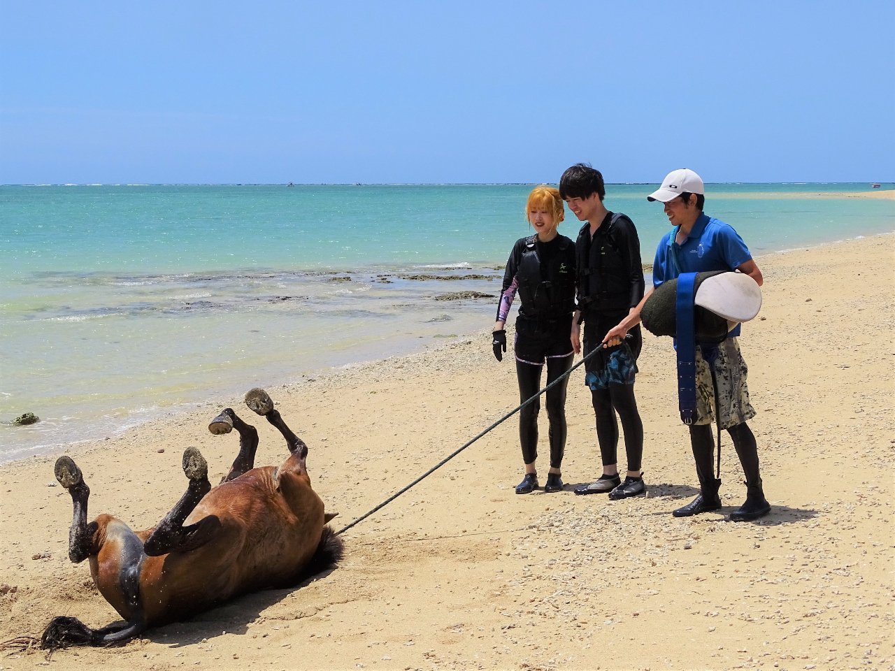 海から上がったら、砂の上をゴロゴロ。馬と人がリラックスしながらコミュニケーションする時間