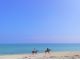 抜けるような青い空と白い砂浜を背景に、憧れのビーチ乗馬を。