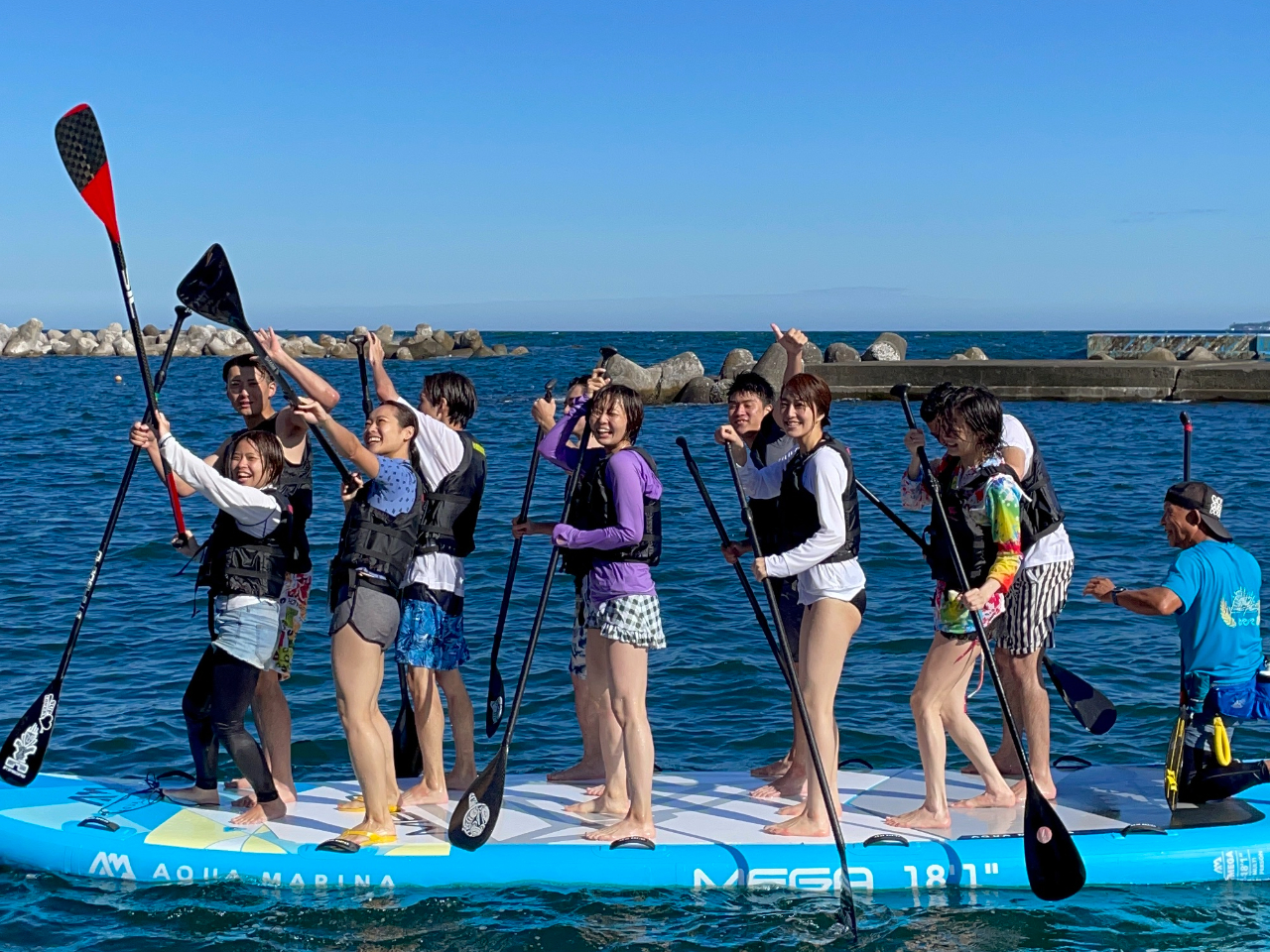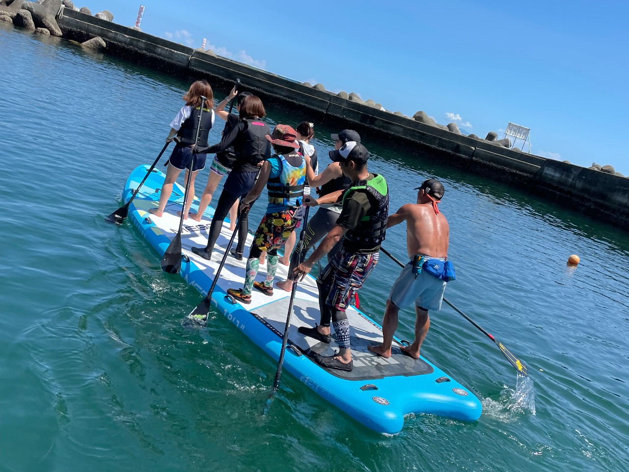 初めてサップに挑戦、8人乗りのビックサップに親戚家族と体験しました。インストラクターの方がその時の状況に合わせて考え色々提案してくれて、ドキドキワクワク、何度も落水しましたが気持ち良く楽しかったです。写真や動画も沢山頂き良い思い出になりました。最後に挑戦した全員でのピラミッドの写真がなかったのが残念だったかな。次は1人乗りに挑戦したいです。
