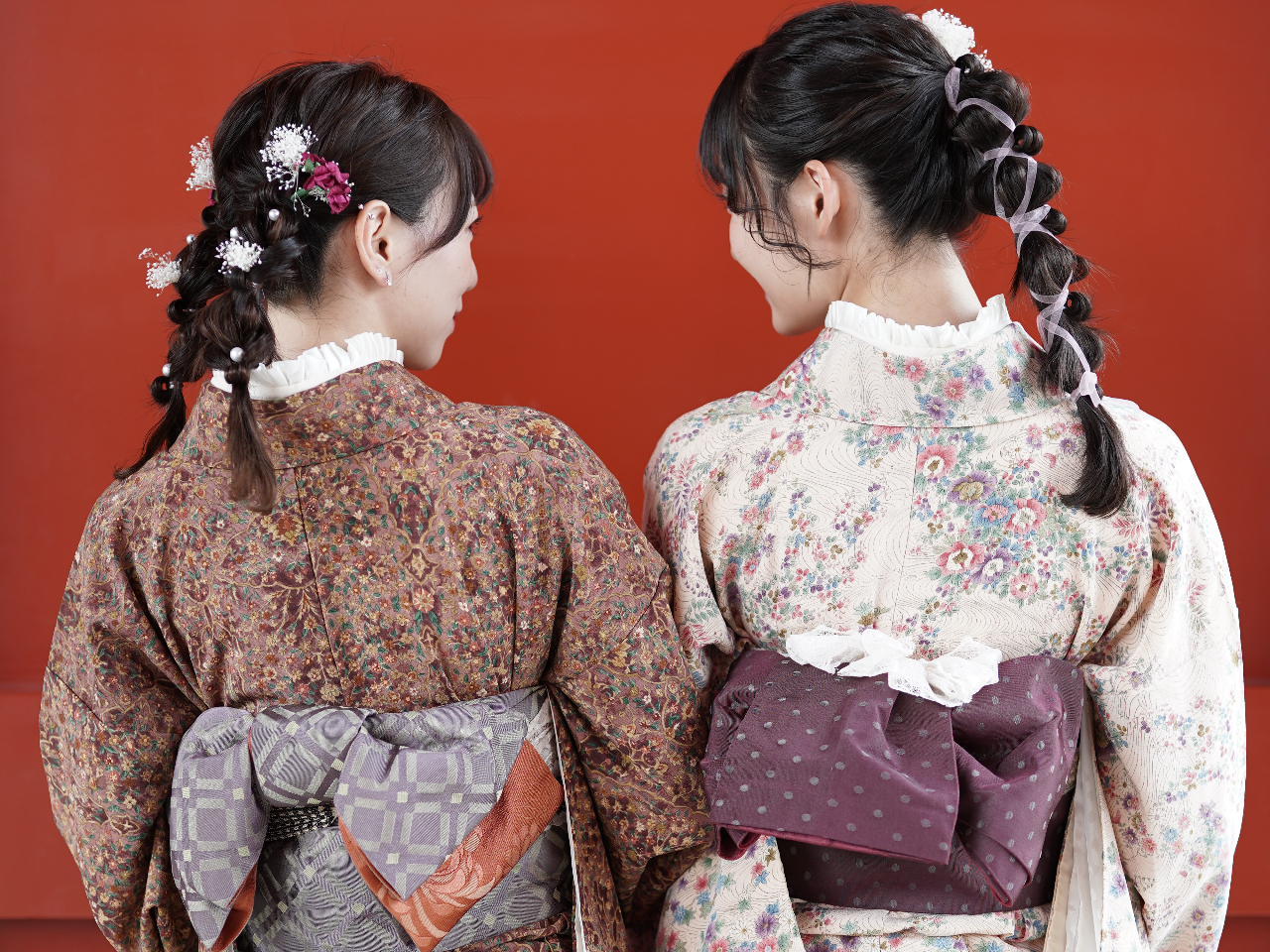 小物レンタルやスタンダードヘアセットも全て込みで、もちろんしっかり本格的なお着物をお召しいただけます!ご来店は手ぶらでもOKです!