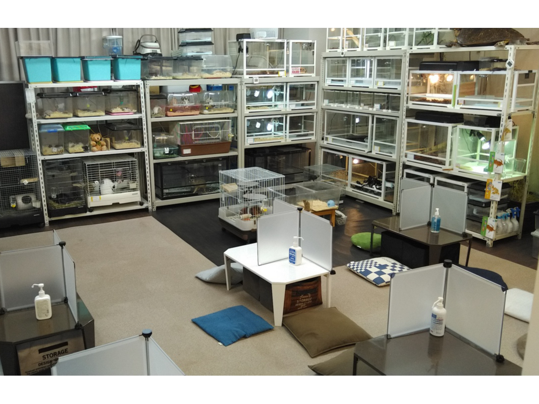 アットホームな店舗内*お靴を脱いで、カーペットの上で、くつろぎながらヘビやトカゲと触れ合えます♪