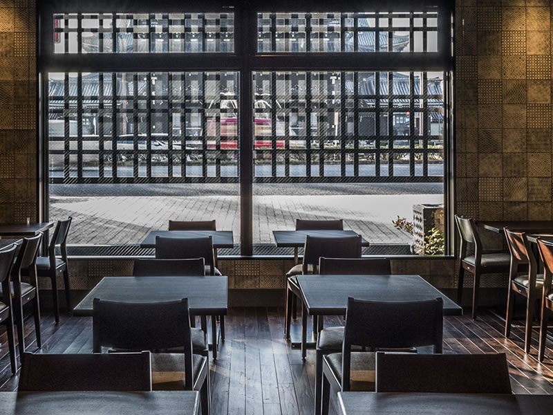 東本願寺を眺めながら、モダンな雰囲気なレストランで