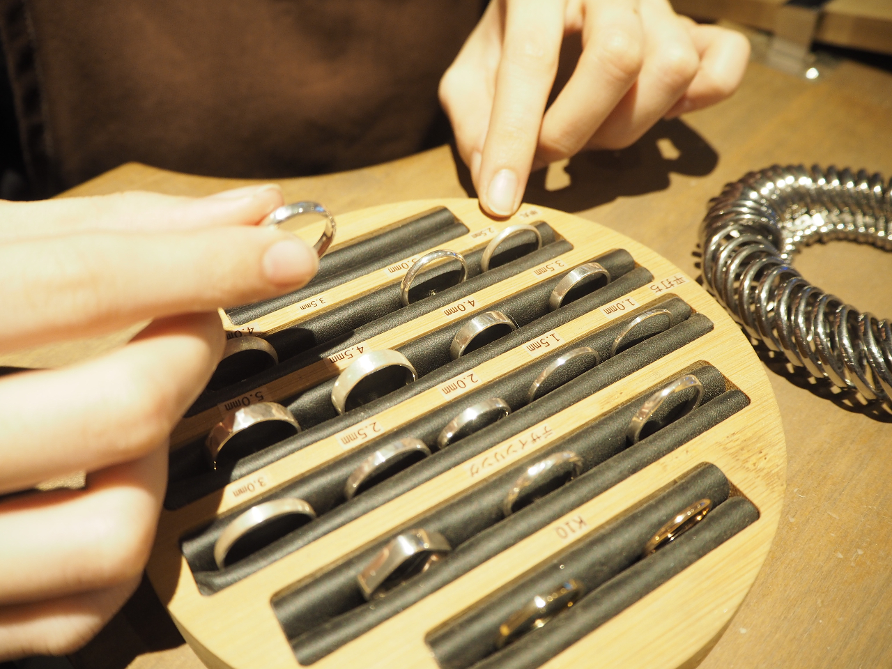 リングの形・幅、表面仕上げ、指の号数を決めて制作を始めます。