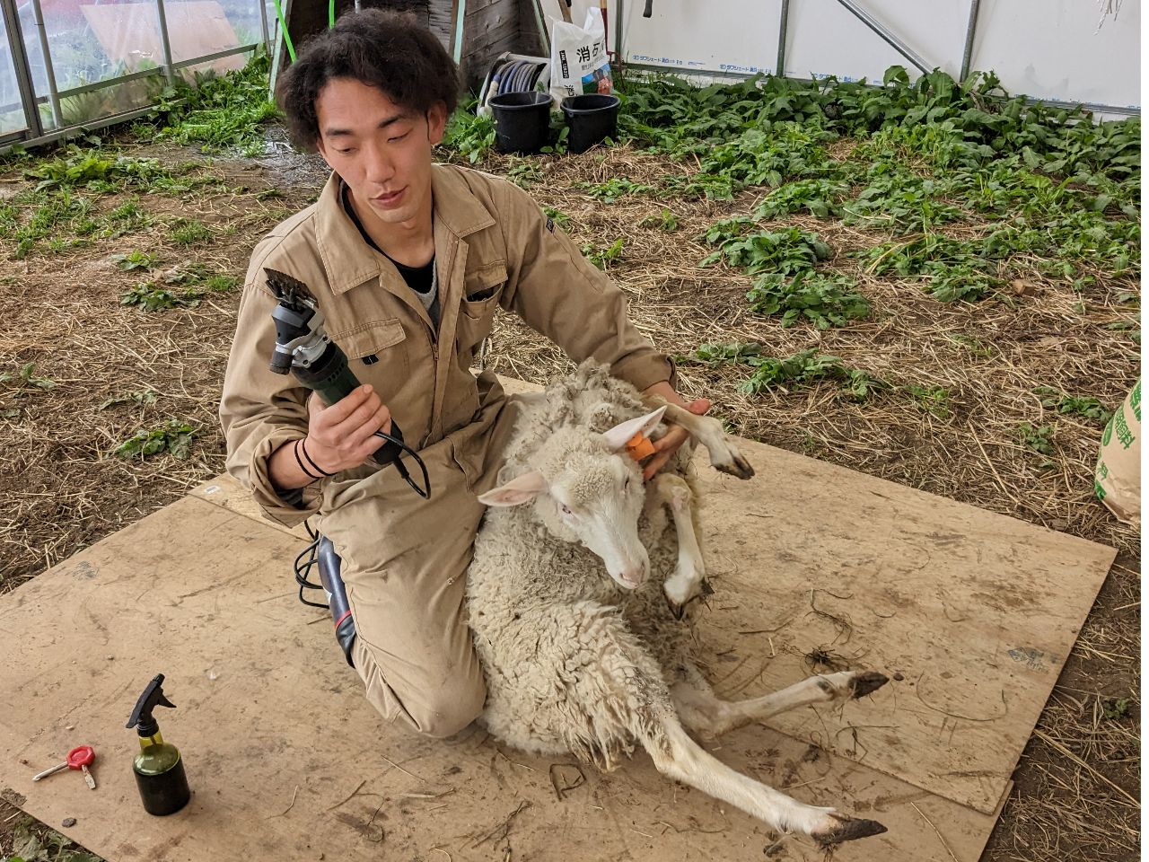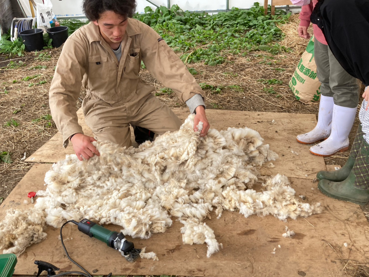 羊とのたわむれを楽しんだら、スタッフがおさえているうちに毛刈りに挑戦!!
