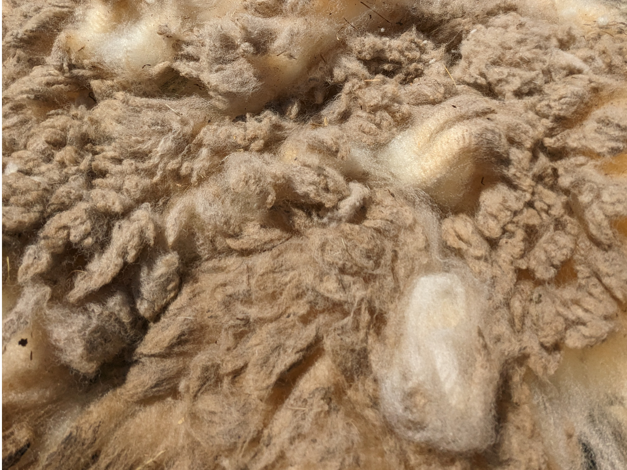 ・刈り取った羊毛のお洗濯。あらかじめ洗って干しておいた羊毛をふわふわのフェルトに仕上げます。