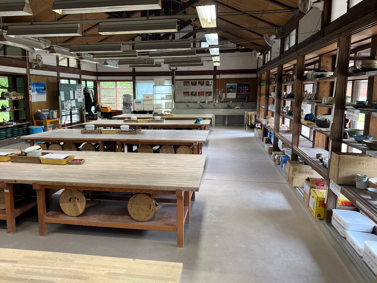 B工房で陶芸体験の説明をさせて頂きます。