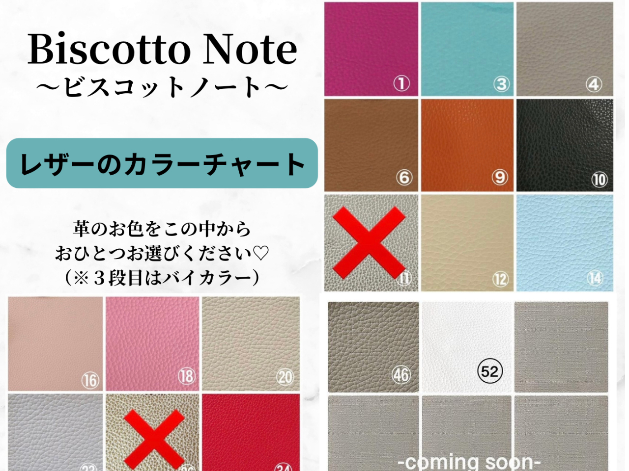 ※ご予約確定しましたら事前にレザーのお色やエンボスの型を選んで頂き、キット注文致しますので必ずメールをご確認お願い致します。