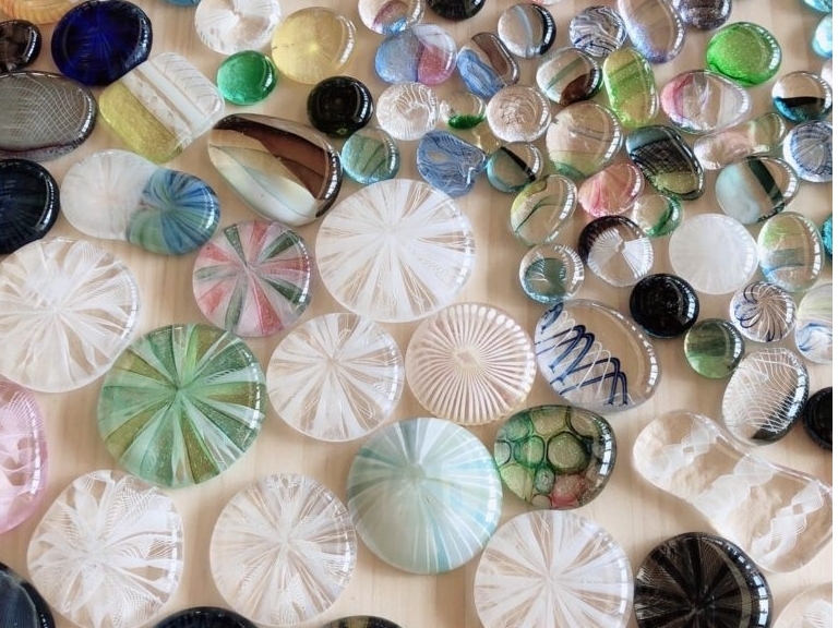 大小さまざまなサイズのガラスのパーツ
