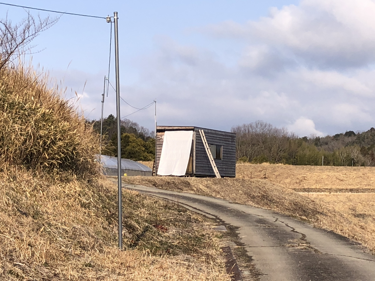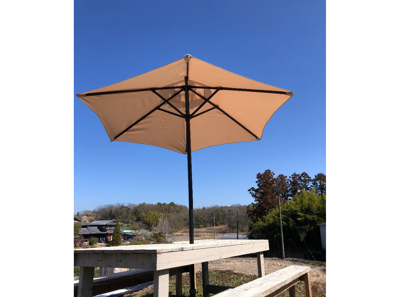 2025年ハウスの中にウェイティングエリアを作りました 少し早く着いた方はご利用ください 近くの里山の竹を使ってます