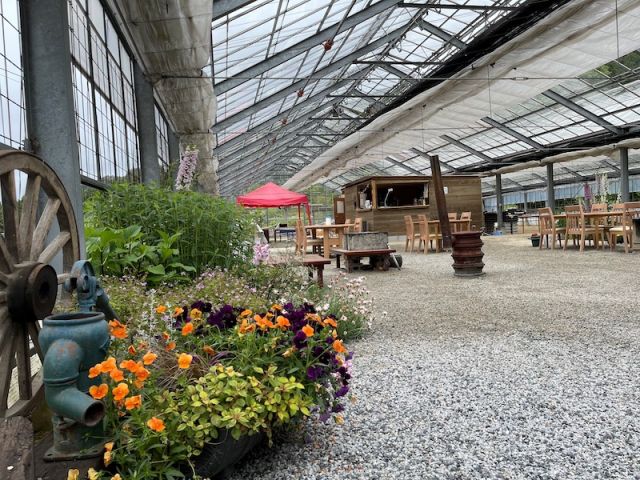 ご心配なく!実は温室、横っ腹が全部開く仕組みになっていますし、頭上に日差しを遮る暗幕を張ることもできます。天窓も開けられるようになっていて、風が循環する仕組みになってるんです!
