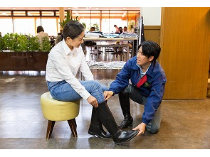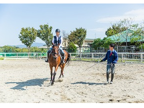 まったく初めての方を対象に馬に触れるところから、馬に乗って発進・停止の合図や誘導、少し走れるところまで気軽に体験できるコースです。