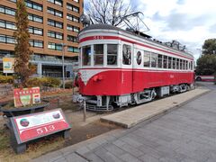 北口バスターミナル奥(金の信長像に向かって右奥、11番・12番乗り場北側)に旧名鉄岐阜市内線の車両(513号車)が保存されています。雨ざらしですが、保存状態は良好です。