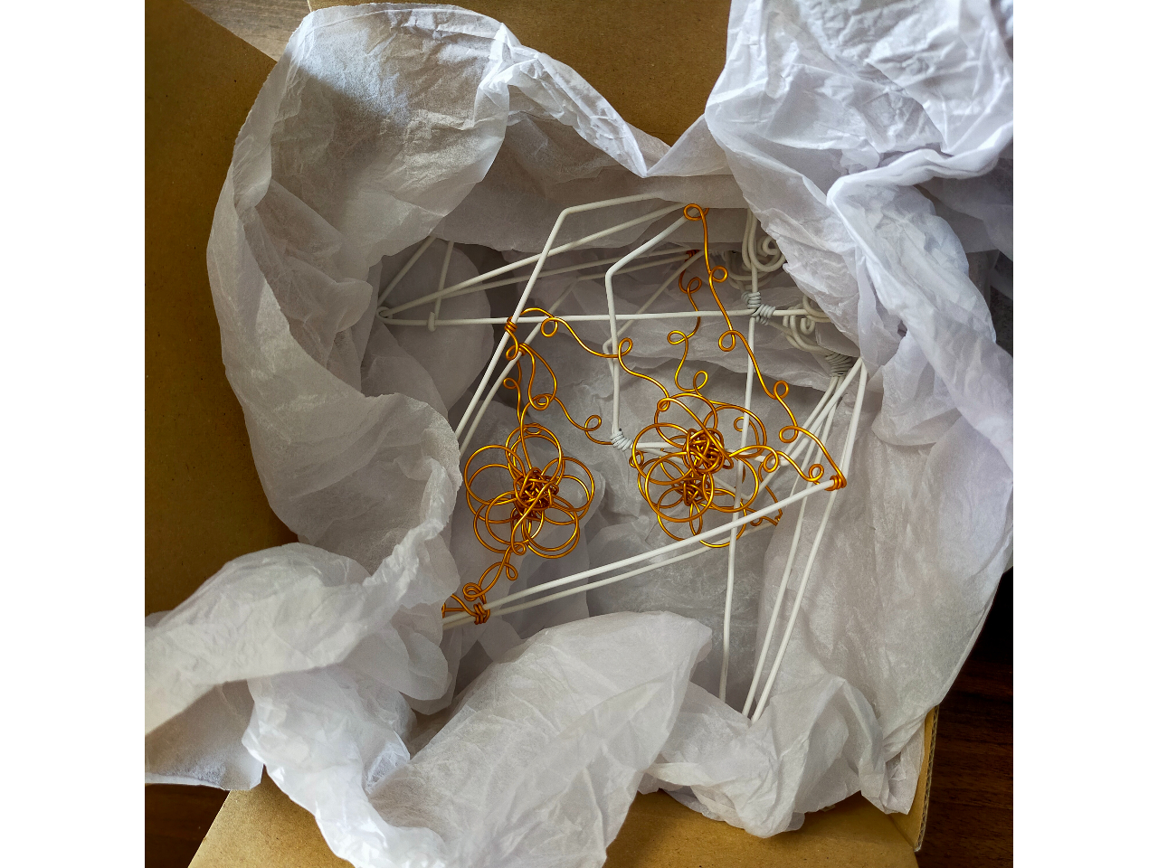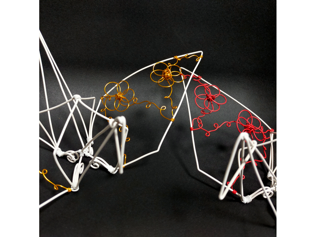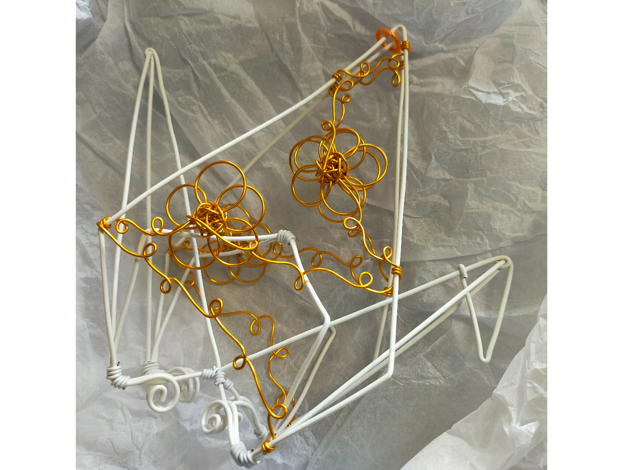 A実物大の型紙にワイヤーを合わせて制作し完成。