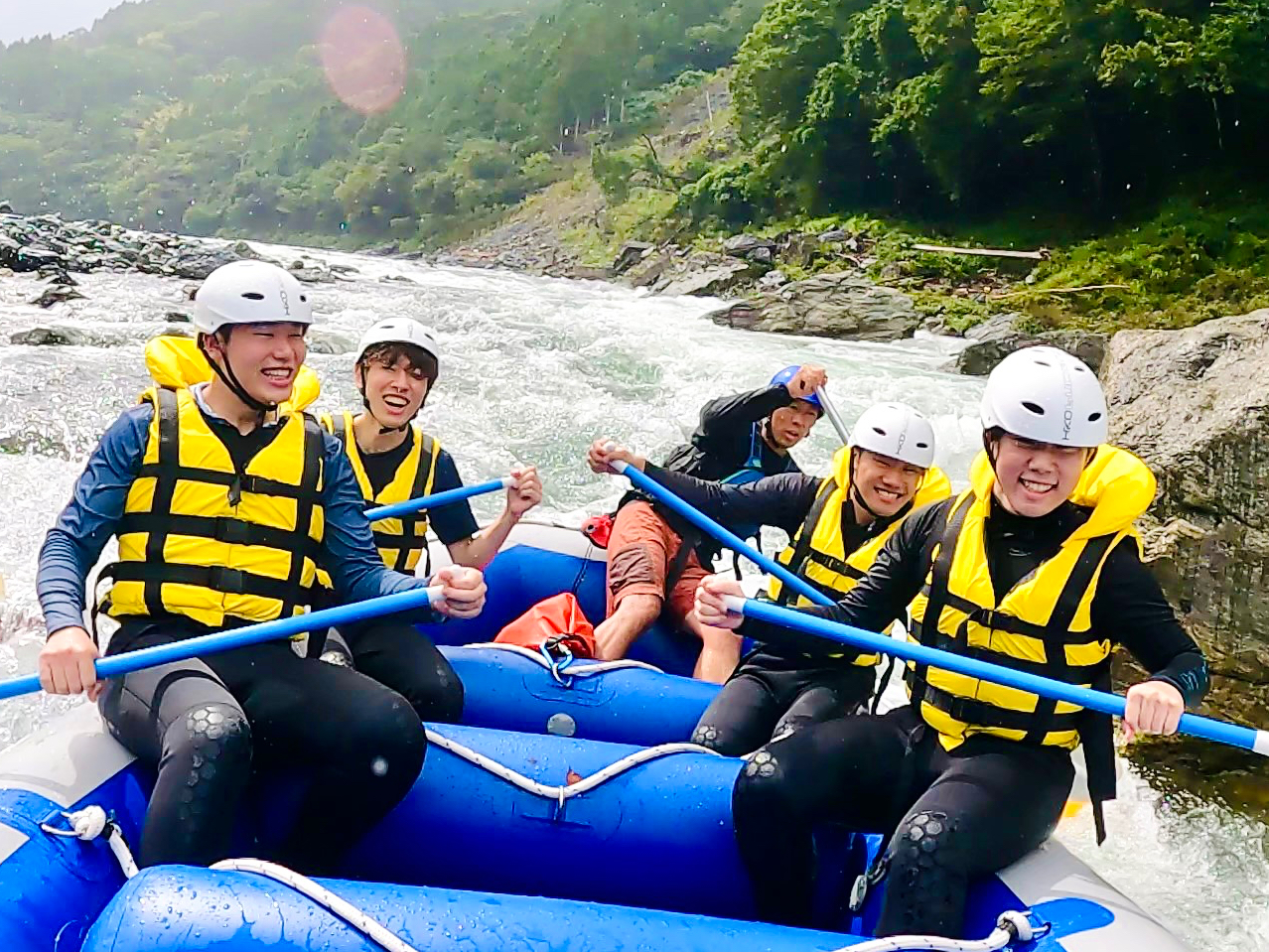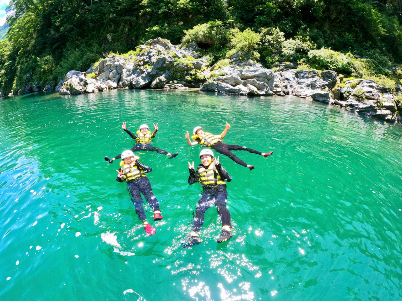 吉野川を初心者から経験者までちょうどよく楽しめるプラン!多数の激流ポイントを満喫でき、ボートやパドルを使ったゲーム、岩場からの飛び込みチャレンジなど遊びもたくさん体験できます!