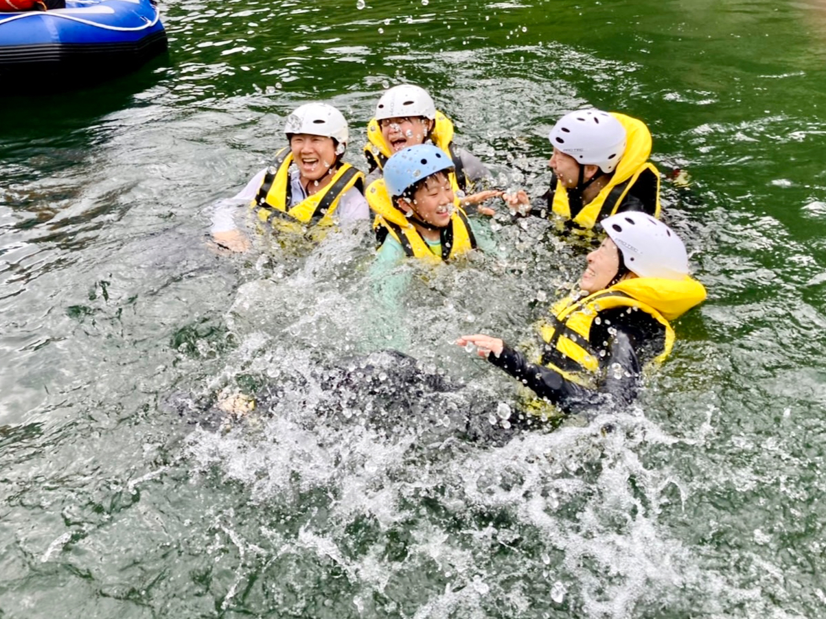 自然はお子さまの五感を刺激し、豊かな感受性を育む場所として非常に良いとされています。大人向けコースの大歩危や小歩危と比較すると、過激な瀬(流れの早いところ)はもちろんないのでご安心ください。ただし、ところどころに興奮する瀬もありますよ。ご期待ください。いっぱい漕いで、泳いで、飛び込みもして、大自然をみんなで楽しみましょう!!!