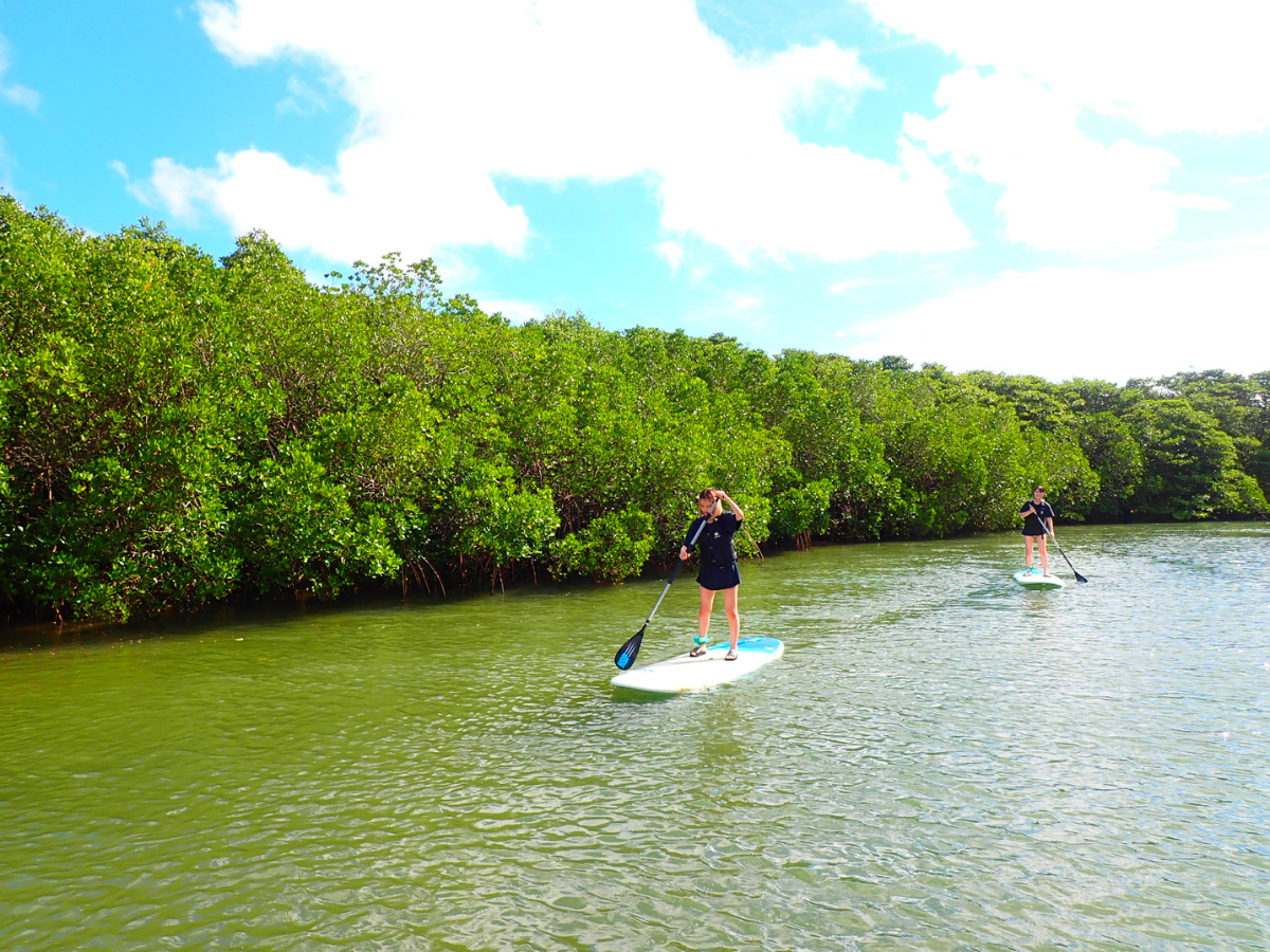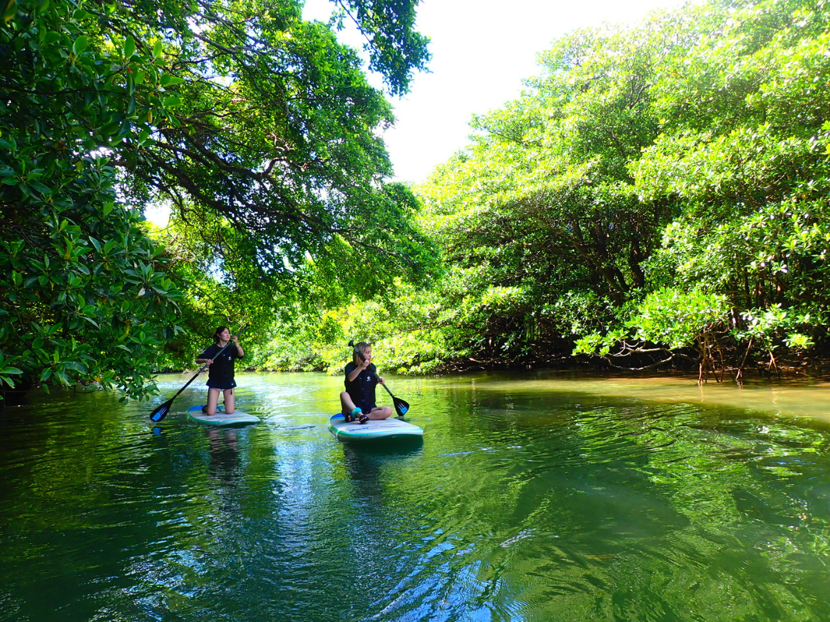 天然記念物のマングローブ林が生い茂る宮良川をサップまたはカヤックに乗って体験!