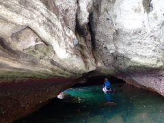 高校生の娘を連れて夫婦の3人で参加しました。基本を教えてもらい早速実践。洞窟を通り抜けたり、外海の洞窟を訪ねたり、休憩時間には顔をつけると魚が沢山見えました。3時間のアドベンチャー感満載の体験。皆様も透明感のある綺麗な海で楽しんで下さい。