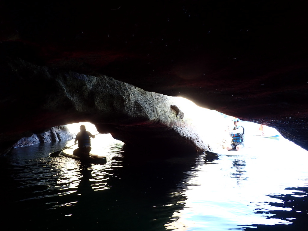 子浦の海岸から出艇し、静かな入江、トンネル、洞窟などをめぐるアドベンチャー!!