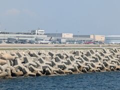 空港の護岸のそばを航行するクルーズ