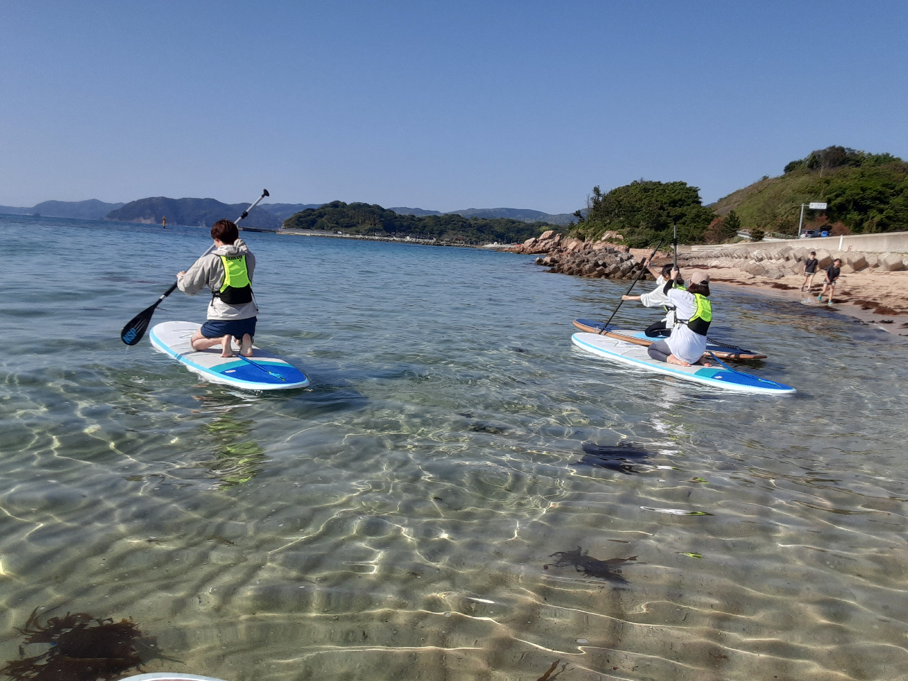 ・体力の問題や機材のサイズによって、SUPを漕ぐことが難しい場合は、恐れ入りますが指導者と二人乗りで体験に参加いただきます。