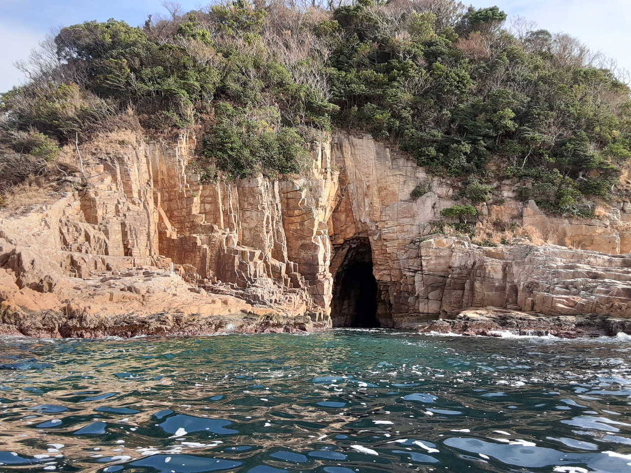 壮大な大自然のエネルギーを感じるコウモリ洞窟。浸食洞で波風が少し強い所なので、ボードコントロールと力強く漕ぐ力が必要なコースです。