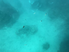 ウエットスーツを着用して最初はシュノーケルで水深5mから8mのところで水遊び。