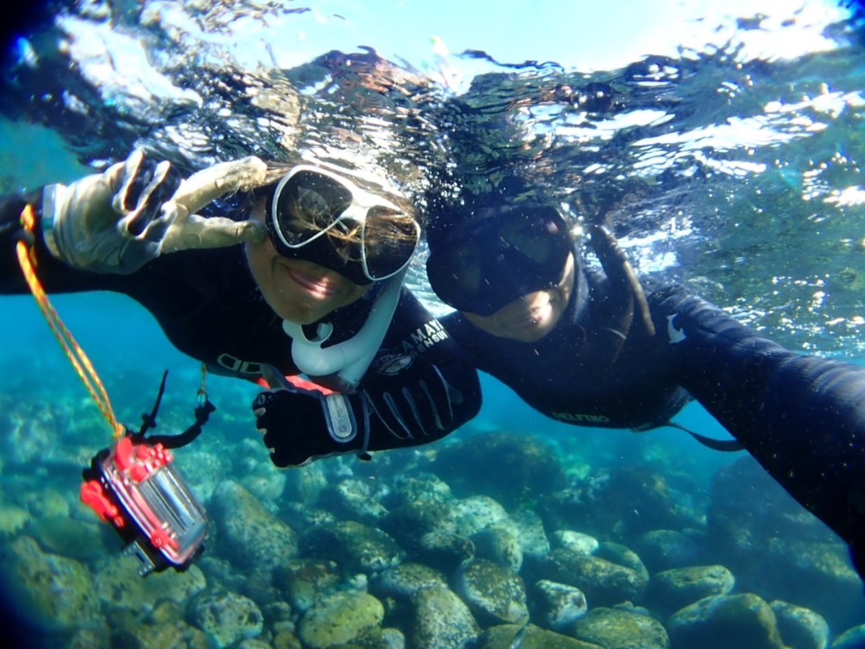 11:30 スキンダイビング、スノーケリングに海で挑戦!フロートを持っていくので休憩しながら、泳いだり、潜ったり、海の中を観察したり、体感したり、思う存分楽しんでください。