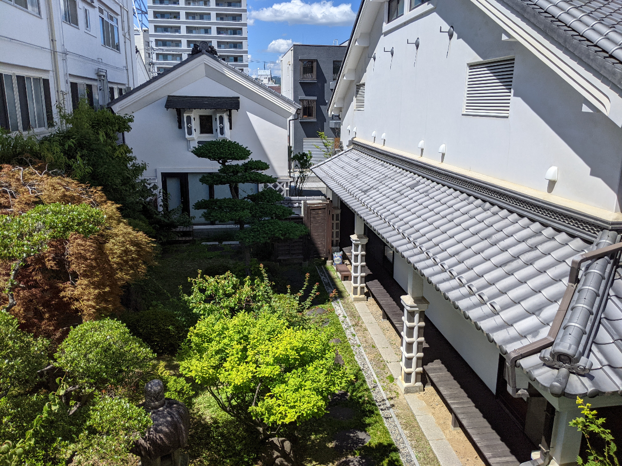 ですが、細い路地をひとつ入ったところには元禄時代のお寺の山門が残っています。お城の近くの公園には江戸時代、お堀とセットでお城の防御を担っていた土塁が保存されていたり、昔はお堀だったところが家になったり橋になったりしています。