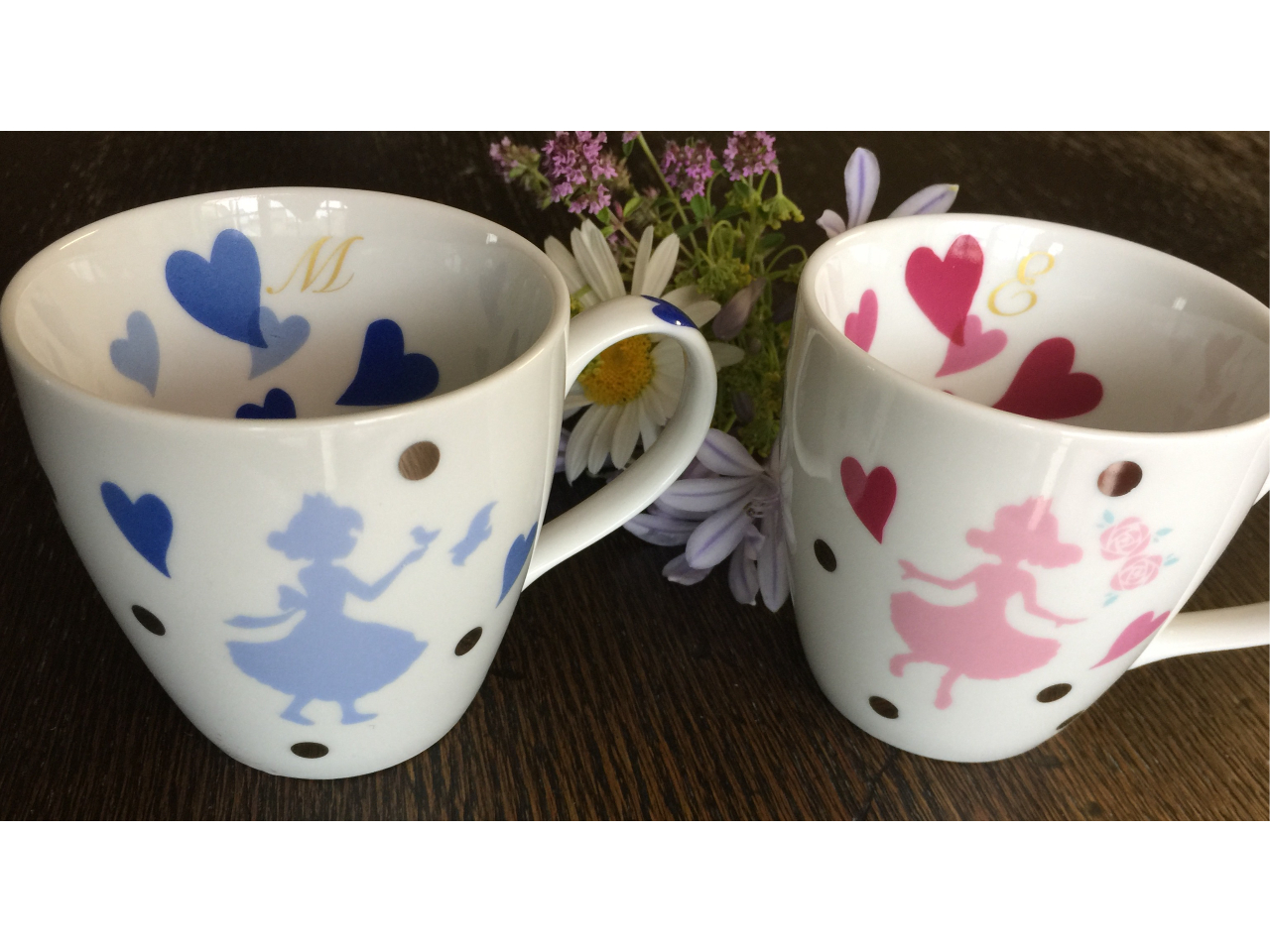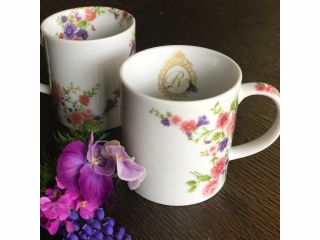 ●マグカップ2個…4,000円(白磁、転写紙、焼成代、レッスン料込み)ポーセラーツサロン・ポーセリンアート