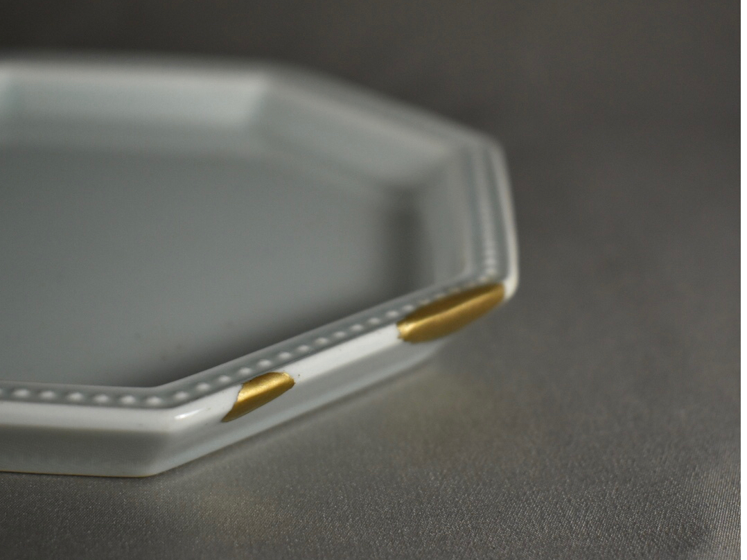 欠けや割れを漆でないもので補填して仕上げの粉の接着で漆を使用するモダン金継ぎ。