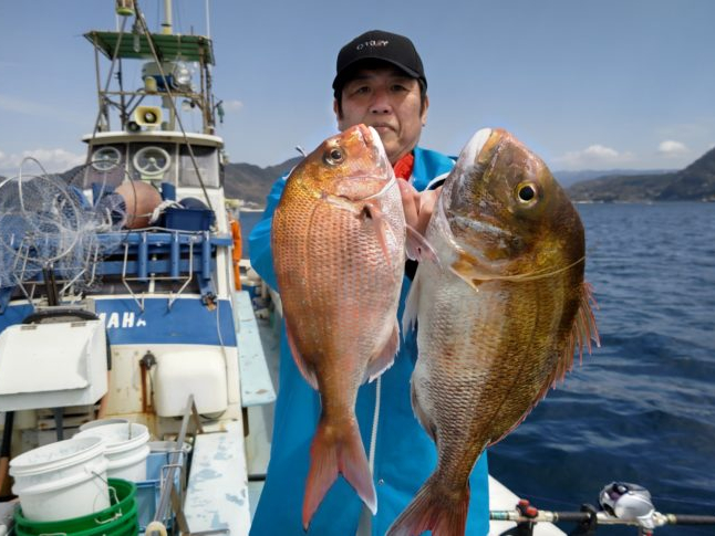 当日は稀にみるえさを食わない日だったようですが、3人で50センチくらいの鯛と太いサバを何本も上げれてとても満足でした。