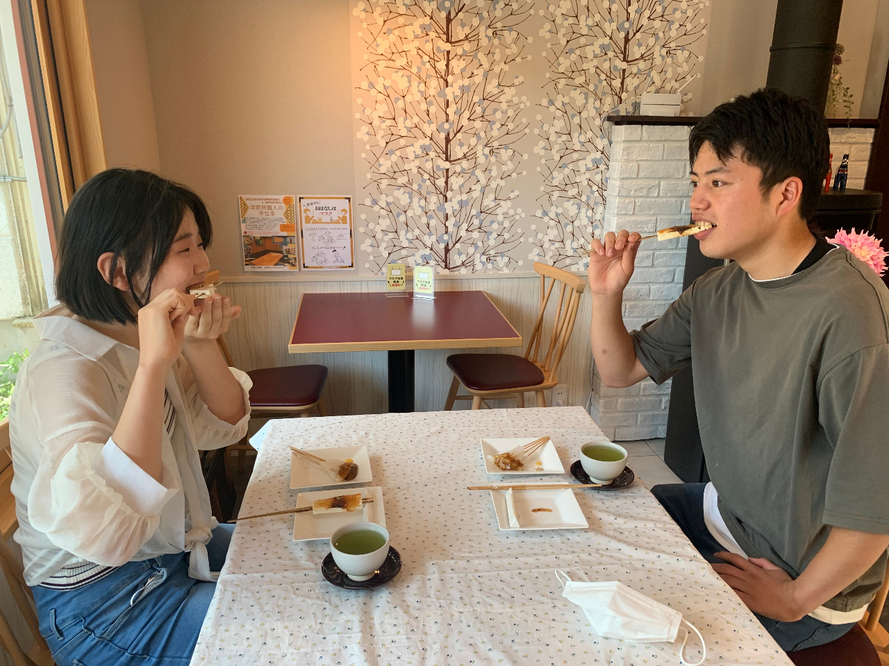 美味しく試食中。塩善茶舗さんのまろやかでコクのある煎茶と共に