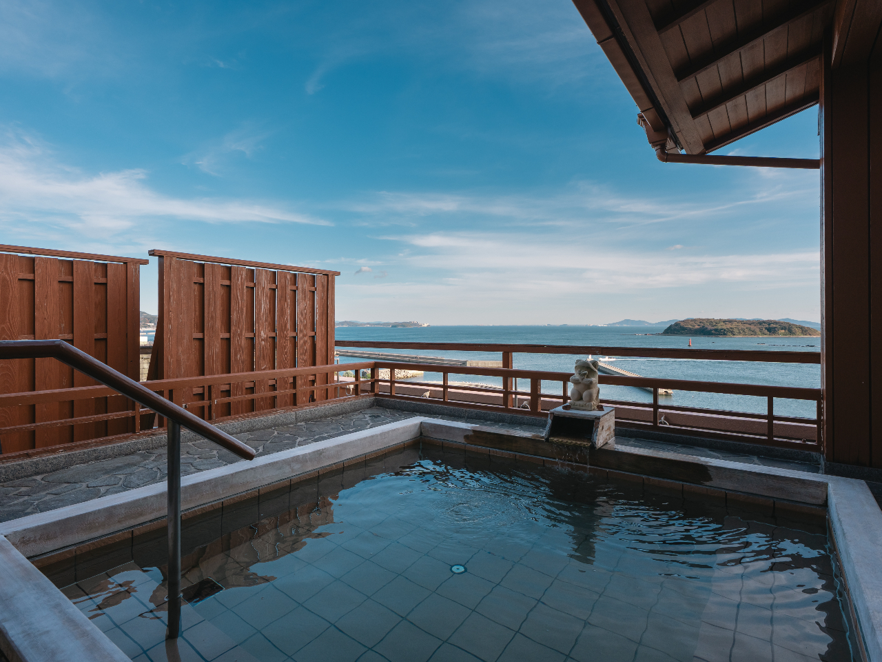 目の前に海の景色が広がるお風呂で、