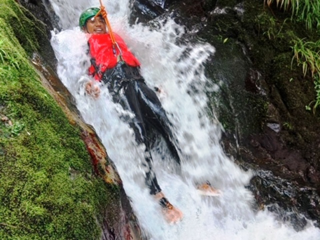 大自然の中でキャニオニング体験は楽しいですよ、緑に囲まれた自然を感じながら行うキャニオニングは爽快な気分になれます。
