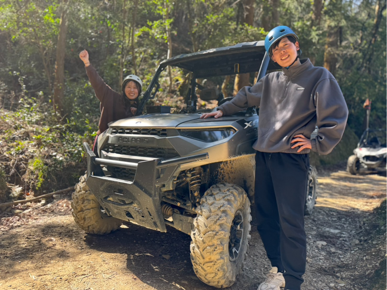 アドベンチャーバギーのメイン!森の中でバギーと一緒に写真をスタッフがお客様の携帯電話にてお撮りします!
