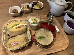 こちらは2回目で、前回と内容が変わって3つの中から選べる朝食になっていました。前も良かったのですが、こちらも来て良かったと!今回、迷って蒸しパンサンドイッチにしました。甘み抑えたもちもち蒸しパンにサーモンとクリームチーズにお野菜のといちごとクリームの甘い系との2種類に、大きめお野菜の入ったクリームシチューもついてとてもボリューミーな朝食。ドリンクコーナーも魅力的で身体に良さそうなハーブティーも数種類。それにドライフルーツやクッキー、チョコレートなどラウンジスナックコーナーのようなところもあって、全種類制覇したいって思いました。