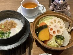 変わり種お粥と蒸し野菜をいただき、心も身体も温まりました。