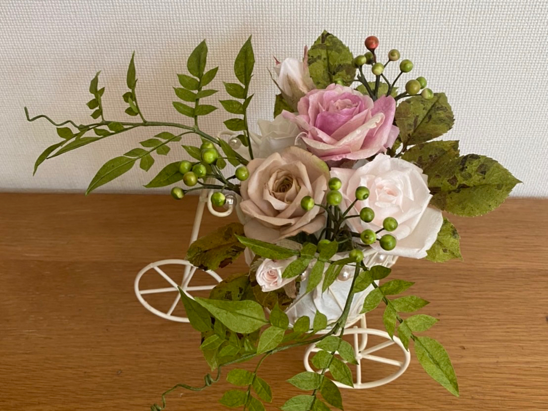 花びら一枚一枚つくっていくレッスンのため、同じものはなく本物のようなバラに仕上がります。また和紙で作るお花のため枯れず、管理もしやすいです!