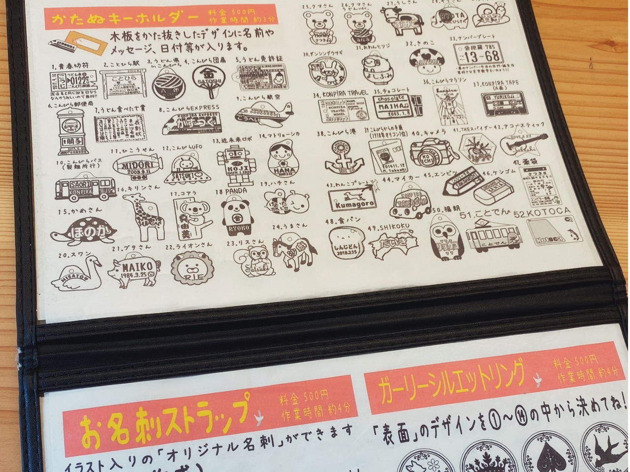 電車が好きな子ども用に、こんぴらならではの琴電柄にして、なまえをいれてもらいいい記念になりました!文字もいろんな種類から撰べるし、お店のいろんな木のあたたかみあるグッズをみるのも楽しかったです!