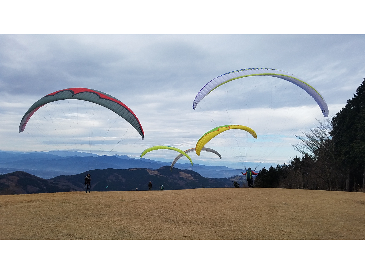 堂平山山頂西エリアでのソアリング 皆さん鳥になっています。